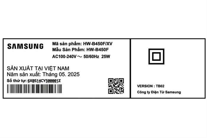 Loa thanh Samsung HW-B450F/XVsở hữu thiết kế tối giản nhưng hiện đại với gam màu đen tuyền chủ đạo, kết hợp giữa loa thanh dài và loa siêu trầm hình khối tạo nên một tổng thể hài hòa, thanh lịch. Nhờ chất liệu nhựa và kim loại cao cấp, sản phẩm không chỉ bền bỉ theo thời gian mà còn dễ dàng lắp đặt ở nhiều vị trí như đặt trước TV, treo tường hay trên kệ tùy không gian nội thất.