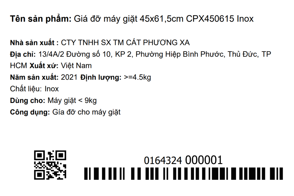 Chân đế máy giặt CPX450615 phù hợp với các dòng máy giặt cửa trước, giảm nguy cơ phần đáy của máy tiếp xúc với nước, hạn chế gầm máy bị gỉ sét, xuống cấp.