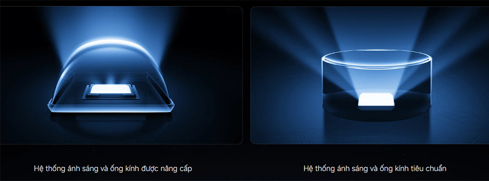 Bên cạnh đó, hệ thống ánh sáng còn được nâng cấp với ống kính siêu nhạy, giúp tăng cường độ sáng tổng thể và độ đồng đều trên toàn màn hình, mang lại hiệu suất hội tụ ánh sáng ấn tượng.