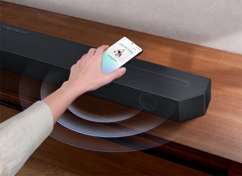 Chỉ cần một thao tác chạm nhẹ điện thoại vào loa thanh bản nhạc yêu thích sẽ được phát trên loa nhanh chóng. Loa thanh và điện thoại di động sẽ được kết nối Bluetooth thông qua cảm biến rung, tự động kết nối và trình phát liền mạch bài hát bạn đang nghe – với chất lượng âm thanh rõ nét, sống động nhất.