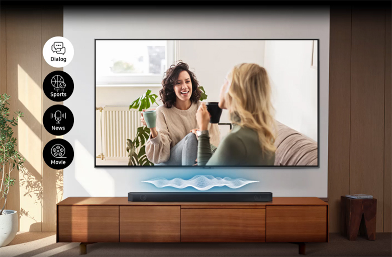 Hơn nữa, loa soundbar Samsung còn có khả năng tự động phân tích và tối ưu âm thanh theo từng khung hình hiển thị giúp bạn có thể nghe rõ từng lời thoại chi tiết hơn.