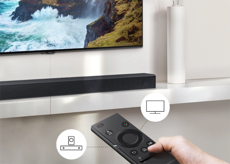 Người dùng có thể điều khiển loa Samsung từ việc bật/tắt, điều chỉnh âm lượng, thêm hiệu ứng âm thanh một cách dễ dàng hơn thông qua One Remote Control mà không cần phải điều khiển trực tiếp trên loa.