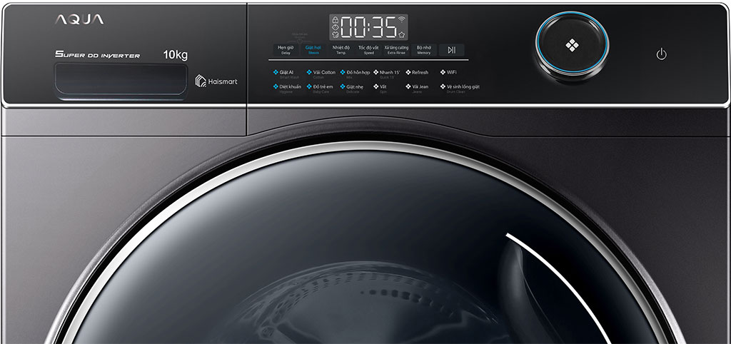 – Kết nối Wi-Fi qua ứng dụng Haismart: Cho phép bạn điều khiển máy giặt từ xa, hẹn giờ giặt hoặc theo dõi tình trạng giặt giũ qua điện thoại một cách dễ dàng.