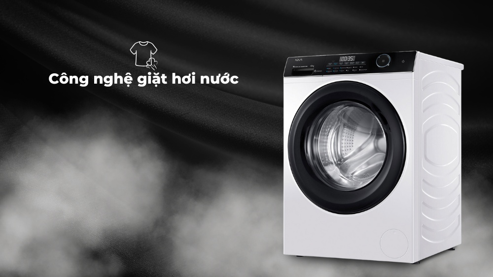 Công nghệ giặt hơi nước là một trang bị nổi bật có trên máy giặt Aqua AW12-BP4959U1K(W). Cụ thể hơi nước được máy tạo ra sẽ len lỏi sâu trong từng sợi vải, hỗ trợ diệt khuẩn, nấm mốc và nhiều tác nhân gây dị ứng khác. Sau khi giặt xong, quần áo trở nên sạch sẽ hơn, mang lại cho người dùng cảm giác an tâm khoác lên người mỗi ngày.