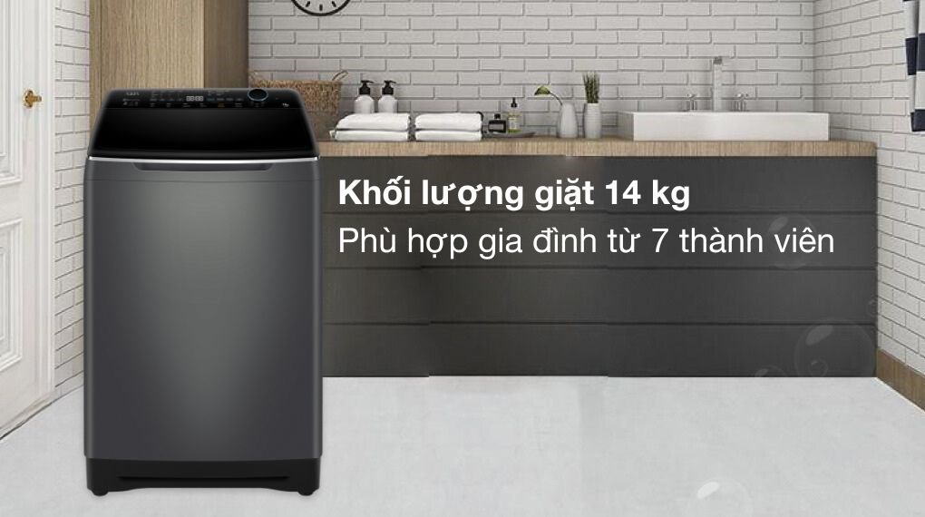 – Máy giặt có khối lượng giặt 14 kg, đáp ứng nhu cầu giặt giũ cho gia đình có từ 7 thành viên.
