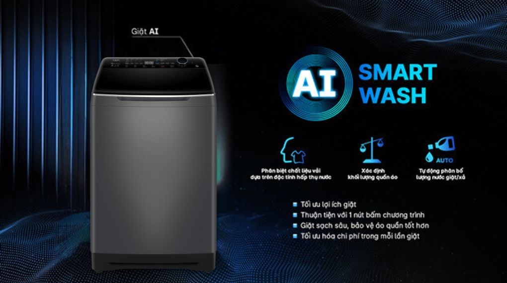 – Công nghệ AI Smart Wash dựa trên đặc tính hấp thụ nước của quần áo mà công nghệ giúp phân biệt các loại vải, các loại quần áo. Không những thế, chức năng này còn giúp tự động tính toán khối lượng giặt giúp quá trình giặt được tối ưu, giặt sạch sâu, bảo vệ quần áo được tốt hơn.