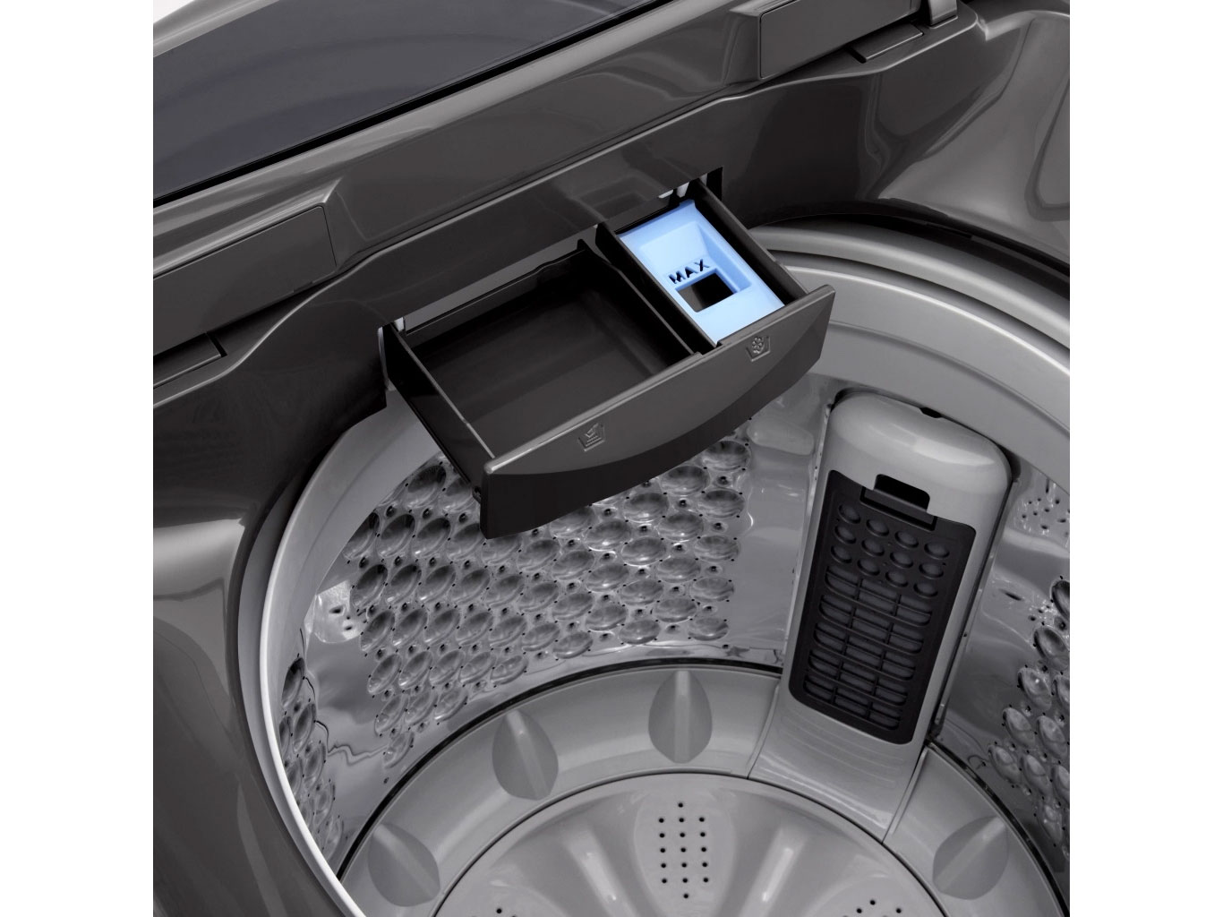 Công nghệ giặt xoay chiều TurboDrum với thiết kế cho phép lồng giặt và mâm giặt xoay ngược chiều nhau tạo ra xoáy nước mạnh mẽ giúp quần áo được giặt sạch hiệu quả, đồng thời giảm tình trạng xoắn rối khiến co, giãn quần áo sau khi giặt.