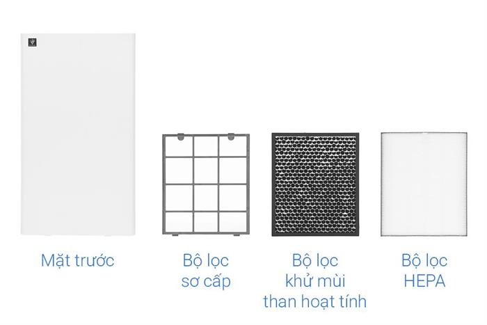 Hệ thống lọc 3 lớp gồm bộ lọc sơ cấp, bộ lọc than hoạt tính và bộ lọc HEPA giúp lọc sạch bụi mịn, phấn hoa, mạt bụi và các tác nhân gây dị ứng.