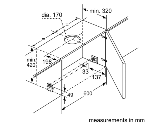 Bosch DFS067K51 Serie 8 có chiều dài 60cm, được sản xuất trên dây chuyền hiện đại của Đức, được làm từ chất liệu làm bằng thép không gỉ và thiết kế lắp âm vào trong tủ bếp rất gọn gàng, tiết kiệm diện tích, phù hợp với những không gian bếp có diện tích nhỏ.