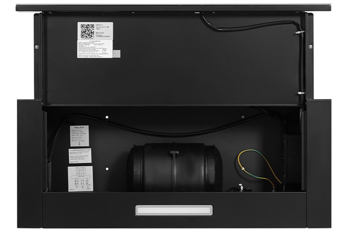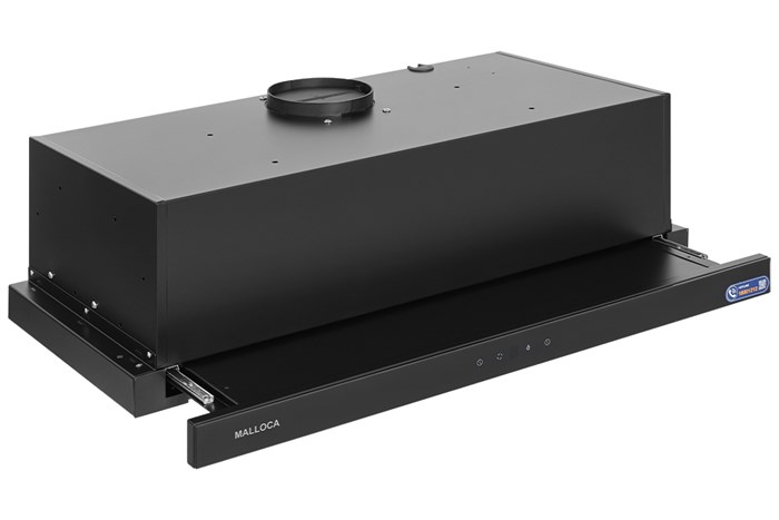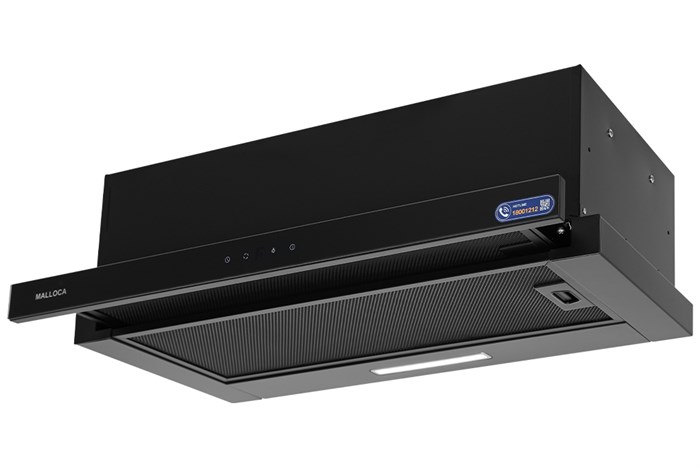 Máy hút mùi Malloca với thiết kế âm tủ gọn gàng kết hợp cùng màu đen sang trọng, hiện đại