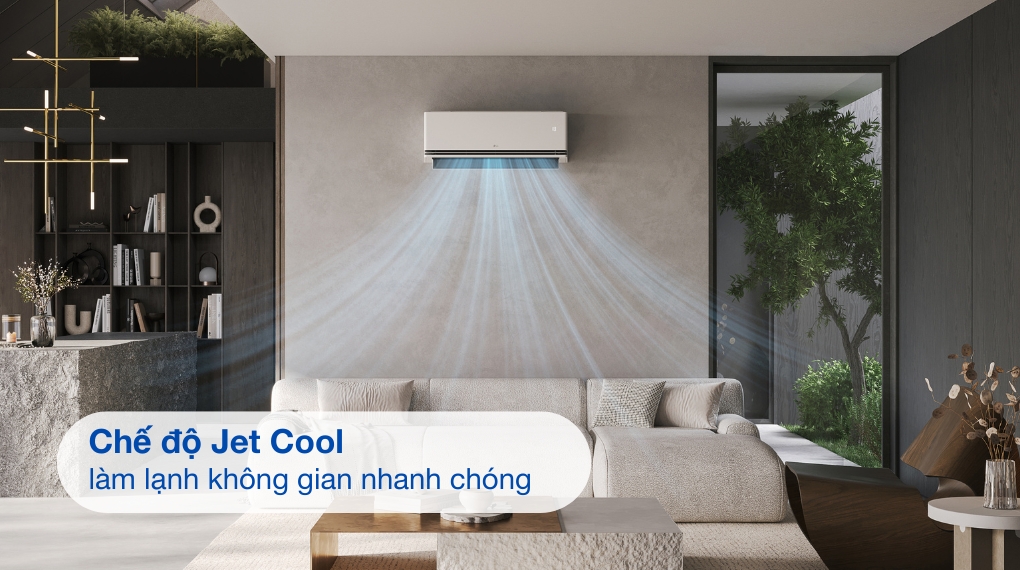 – Chế độ Jet Cool được kích hoạt bằng nút “Jet Mode” trên remote, làm lạnh nhanh chóng, mang lại cảm giác mát mẻ tức thì – lý tưởng trong những ngày nắng nóng.