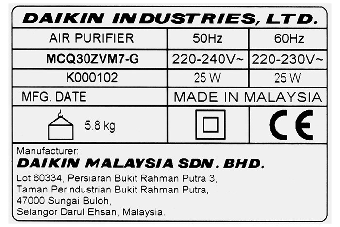 Sản phẩm máy lọc không khí Daikin MCQ30ZVM7-G đến từ thương hiệu Nhật Bản, được sản xuất tại Malaysia uy tín chất lượng.