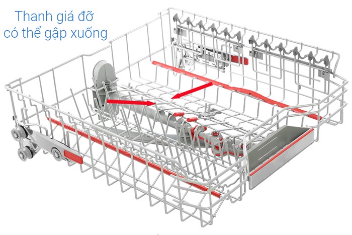 – Khay dưới cũng được hoàn thiện với các thanh giá đỡ linh hoạt (điều chỉnh gập lên/xuống) nhằm tối ưu hơn trong quá trình đặt để, với các thanh giá đỡ linh hoạt này thì ngoài việc đặt dĩa thì bạn có thể gập xuống để đặt xoong nồi, chén, bát,…