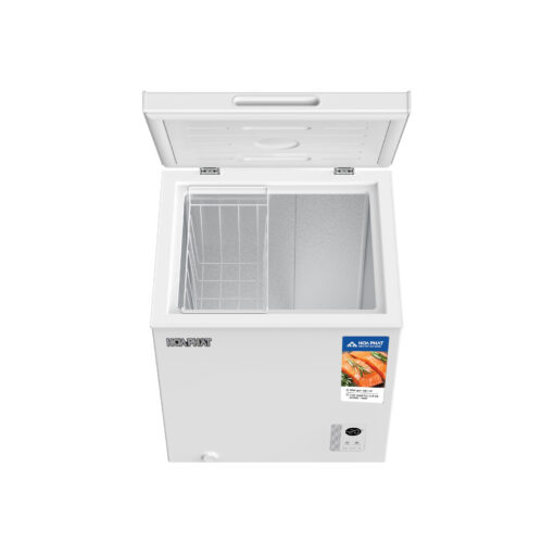 Tủ có dung tích sử dụng 66 lít, thiết kế 1 ngăn đông tiện lợi, đáp ứng nhu cầu bảo quản thực phẩm đông lạnh như thịt cá, hải sản, đồ chế biến sẵn hoặc kem. Dung tích vừa phải giúp người dùng dễ kiểm soát lượng thực phẩm lưu trữ, đồng thời tối ưu điện năng trong quá trình sử dụng lâu dài.
