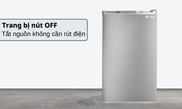 Tủ lạnh mini Casper RO-95PG trang bị nút Off để bạn tắt nguồn khi không sử dụng nữa mà không cần phải loay hoay đi rút nguồn điện. Vừa đơn giản, vừa nhanh chóng và tiết kiệm điện khi không có nhu cầu dùng tới.