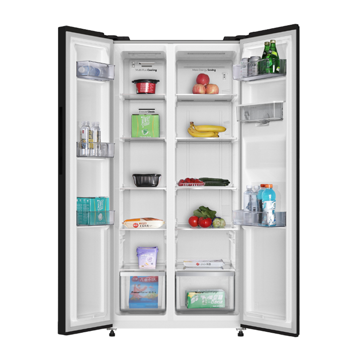 Tủ lạnh Casper Inverter 460 lít RS-D462SBS mang phong cách Side by Side hiện đại, nổi bật với gam màu đen bóng ánh kim lấy cảm hứng từ đá kim sa đen Black Galaxy Granite. Cánh tủ phủ sơn kim loại cao cấp tạo độ sâu và ánh phản chiếu tinh tế, giúp không gian bếp thêm phần sang trọng. Kiểu dáng vuông vức kết hợp tay nắm ẩn tối giản, phù hợp với phong cách nội thất hiện đại của nhiều gia đình.