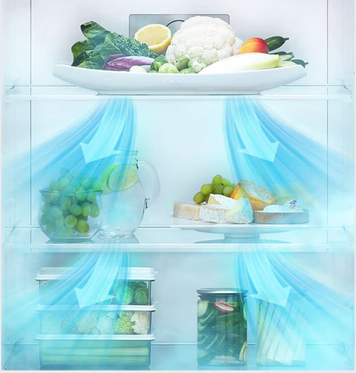Hệ thống làm lạnh đa chiều Multi Air Flow phân bổ luồng khí lạnh đồng đều đến mọi ngóc ngách trong khoang tủ. Các cửa gió được bố trí hợp lý kết hợp với cảm biến kỹ thuật số liên tục theo dõi nhiệt độ, giúp thực phẩm ở nhiều vị trí khác nhau đều được làm lạnh ổn định. Nhờ đó, tình trạng thực phẩm bị hư hỏng do làm lạnh không đều được hạn chế tối đa.