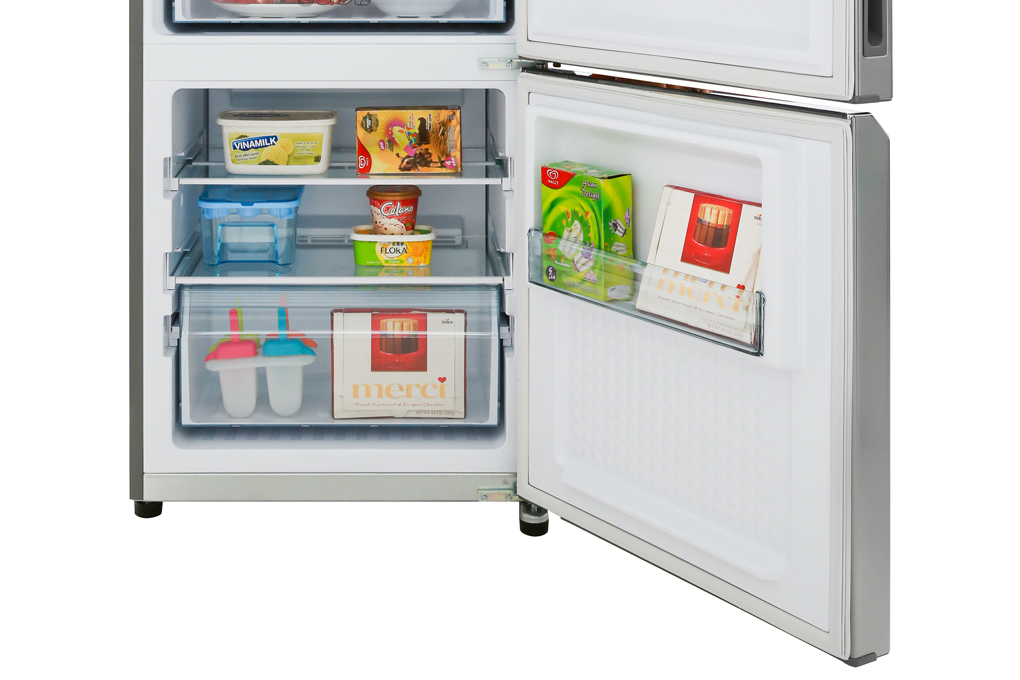 Tủ lạnh Panasonic Inverter 255 lít NR-BV280QSVN mang gam màu xám trung tính, thanh lịch. Bên cạnh đó, thiết kế ngăn đá bên dưới của tủ không chỉ mang lại vẻ đẹp mới mẻ, sang trọng cho không gian nội thất mà nó còn mang lại sự tiện lợi, giúp người sử dụng có thể dễ dàng lấy thực phẩm ở ngăn mát mà không phải khom cúi nhiều lần.