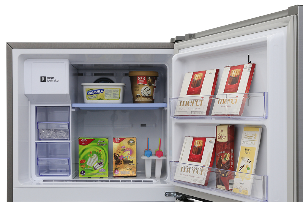 Bên cạnh đó chiếc tủ lạnh này còn có thể tự động làm đá giúp bạn có ngay những viên đá mát lạnh để thưởng thức cùng các loại nước uống giải khát.