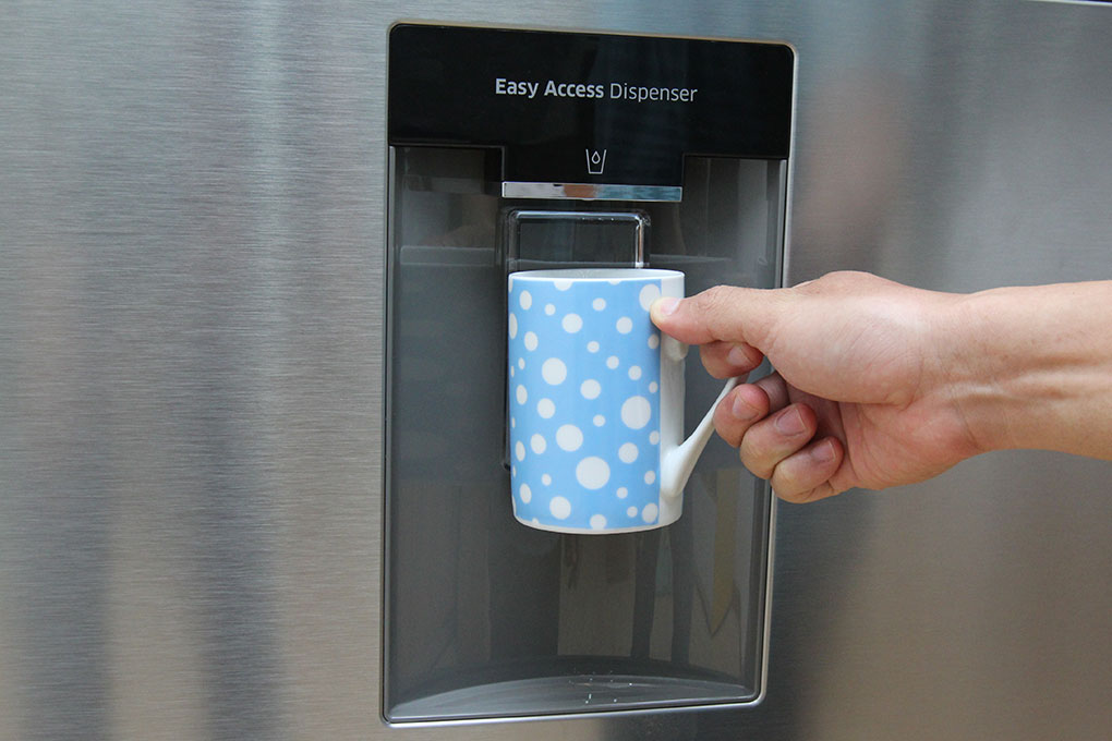 Chiếc tủ lạnh này có thiết kế ngăn lấy nước bên ngoài để giúp bạn dễ dàng sử dụng hơn, bạn sẽ có ngay những cốc nước mát lạnh mà không cần chờ lâu nhất là trong những ngày oi bức, nắng nóng.