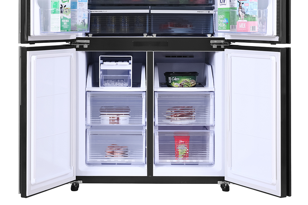 Tủ lạnh Sharp này sở hữu kim loại sang trọng, thời thượng. Thiết kế 4 cửa kiểu pháp giúp sản phẩm trở thành điểm nổi bật cho nội thất trong nhà.