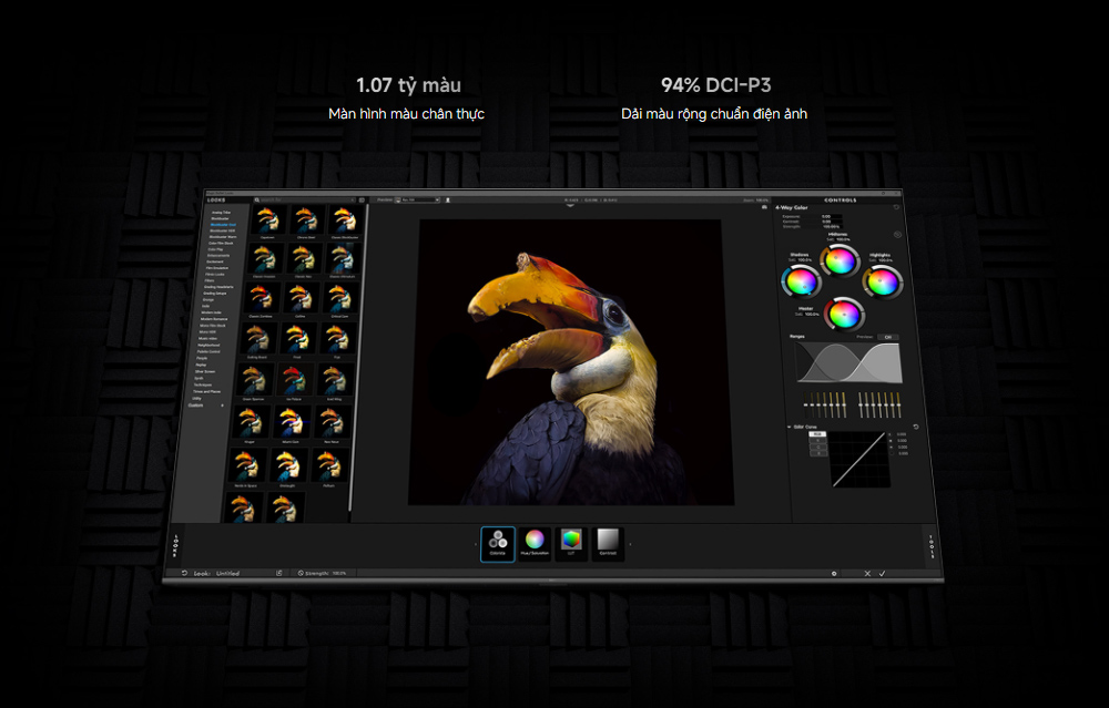 Tái tạo màu sắc sống động với 1.07 tỷ màu, 94% chuẩn DCI-P3