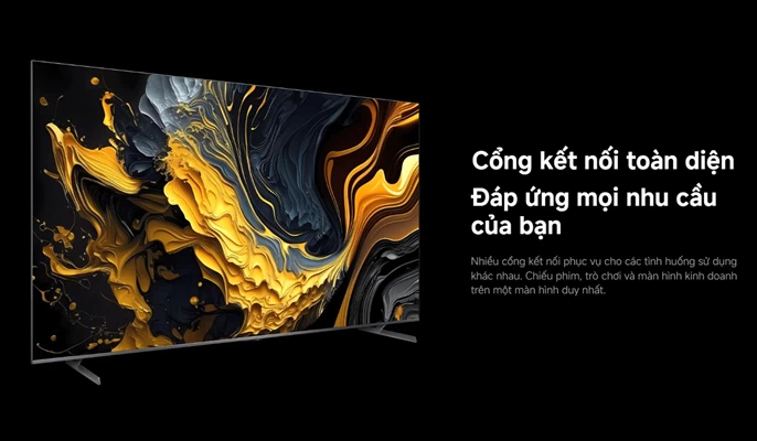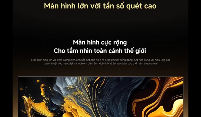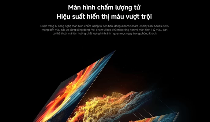 Xiaomi Smart Display Max QLED 4K 85 inch 2025 là một tác phẩm nghệ thuật về thiết kế. Với viền màn hình siêu mỏng, TV tạo cảm giác như không có viền, giúp nội dung hiển thị trở thành tâm điểm chính của mọi ánh nhìn. Dù sở hữu khung hình lớn lên đến 85 inch, thiết bị vẫn giữ được sự mỏng nhẹ và cân đối, phù hợp để treo tường hoặc đặt trên kệ.