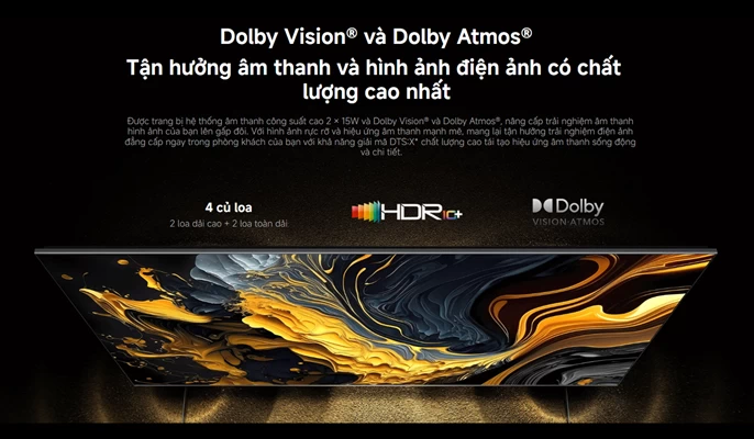 Với công nghệ Dolby Atmos, người dùng có thể cảm nhận âm thanh vòm phát ra từ nhiều hướng, tạo ra không gian sống động và cuốn hút. Không những thế, DTS Virtual:X giúp tái tạo âm thanh vòm ngay cả khi không có hệ thống loa ngoài. Do đó, người dùng vẫn có thể tận hưởng trải nghiệm nghe đa chiều mà không cần đầu tư vào các thiết bị âm thanh phức tạp.